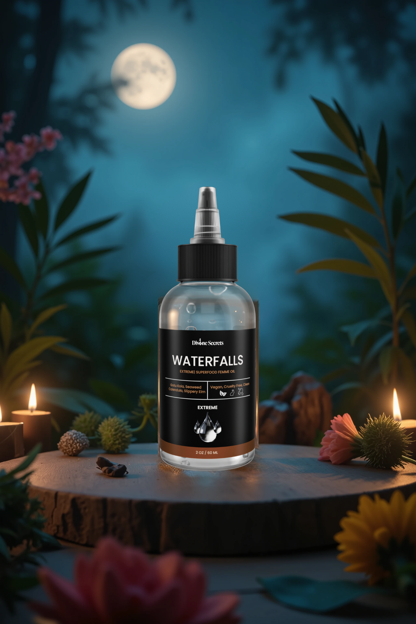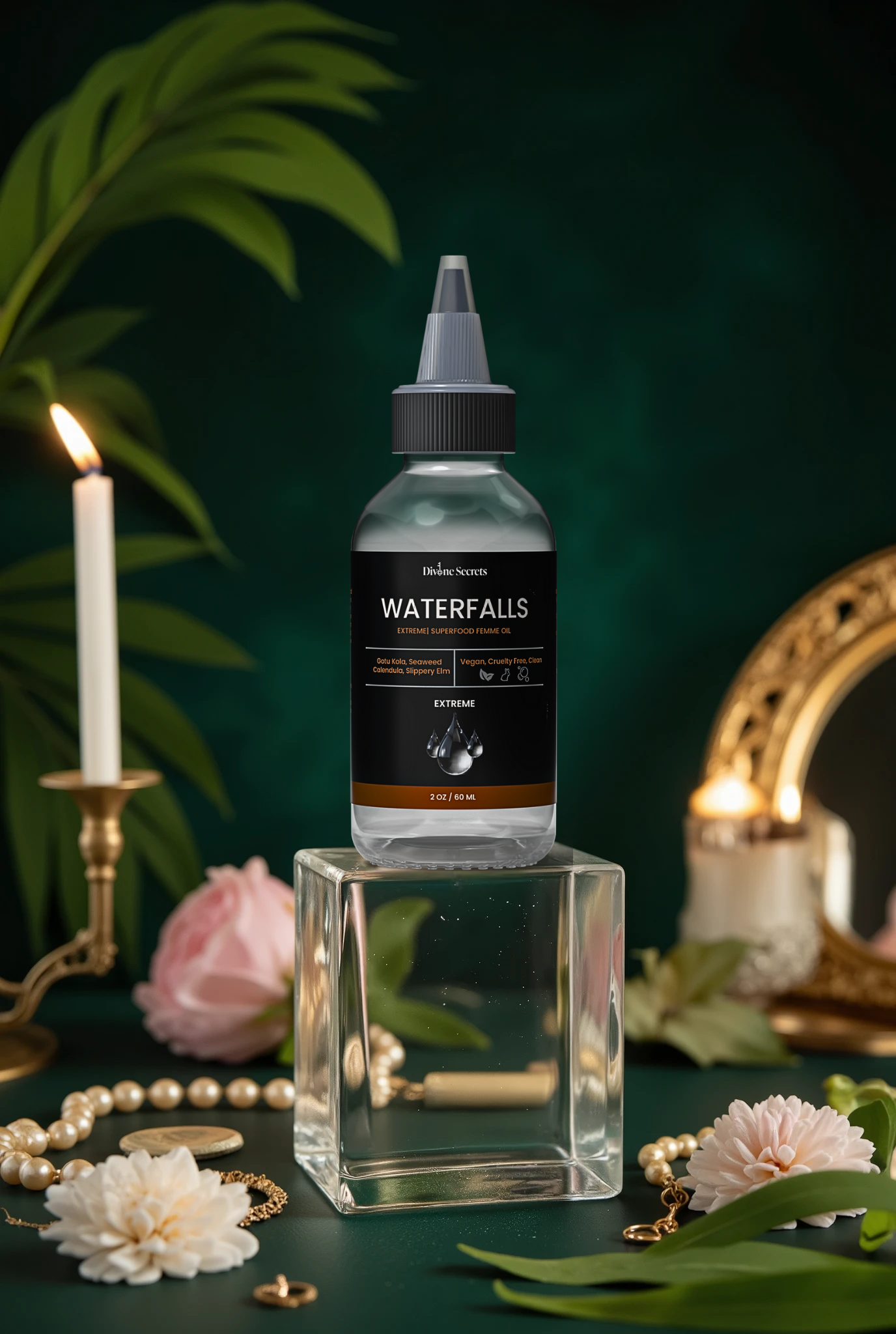 Waterfalls is a clear, fragrance-free serum, exquisitely formulated to provide superior feminine moisture and a long-lasting, silky glide that mimics your natural nectars. This plant-powered, water-based serum enhances intimate moments, naturally toning, nourishing, and conditioning the skin. It maintains its luxurious consistency throughout, ensuring an unparalleled experience.Â